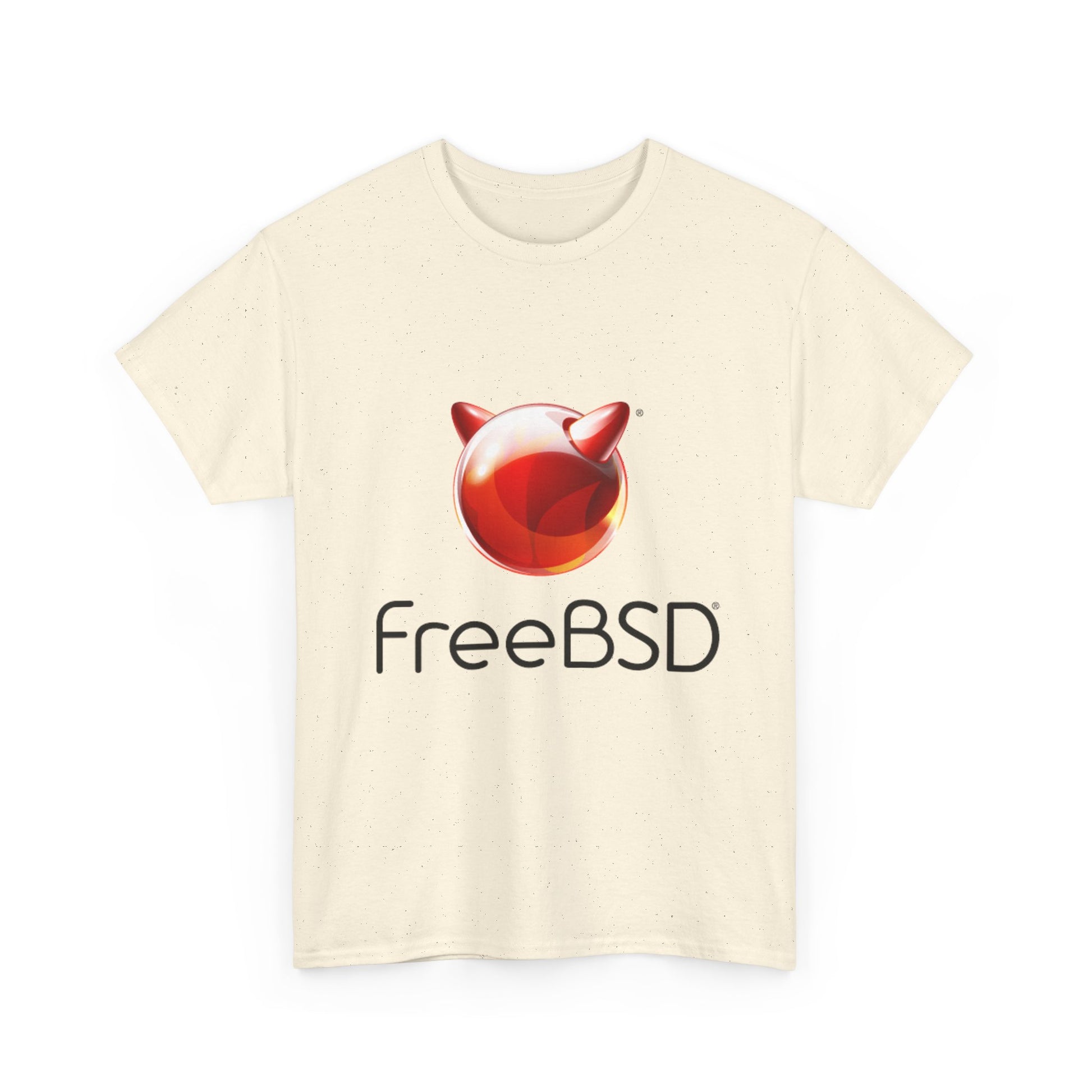 A crisp, archival-feel tee bearing the FreeBSD logo for folks who live in command lines and late-night deploys. The design sits cleanly on a medium-weight cotton canvas that feels substantial without being stiff. Short sleeves and a classic crew neck keep the look straightforward. The natural cotton texture gives the print a lived-in, honest quality that matches the pragmatic, no-frills spirit of the audience.